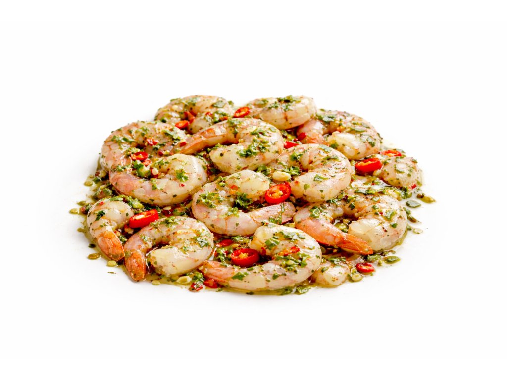 Marinované krevety s petrželí, česnekem a chilli 100g